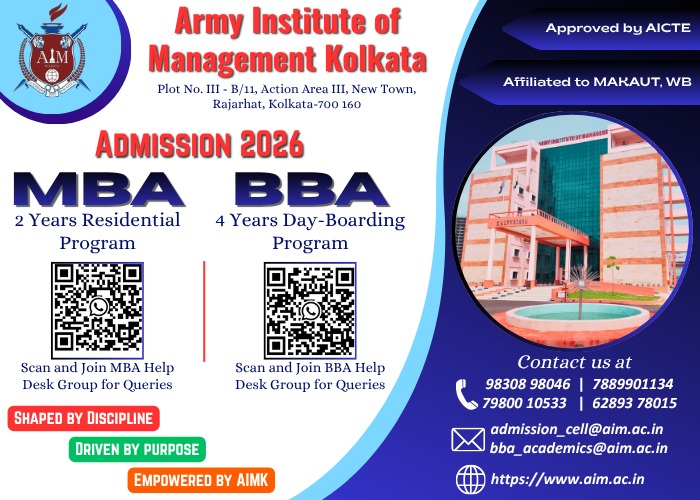 Since its inception, Army Institute of Management, Kolkata, has built a legacy of academic excellence for all its students. Our programmes educate and train the leaders of tomorrow. Be a student today, and take your career to new heights of success.