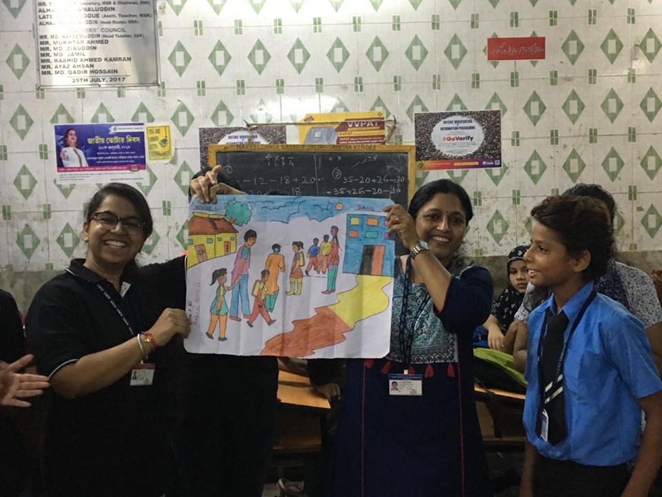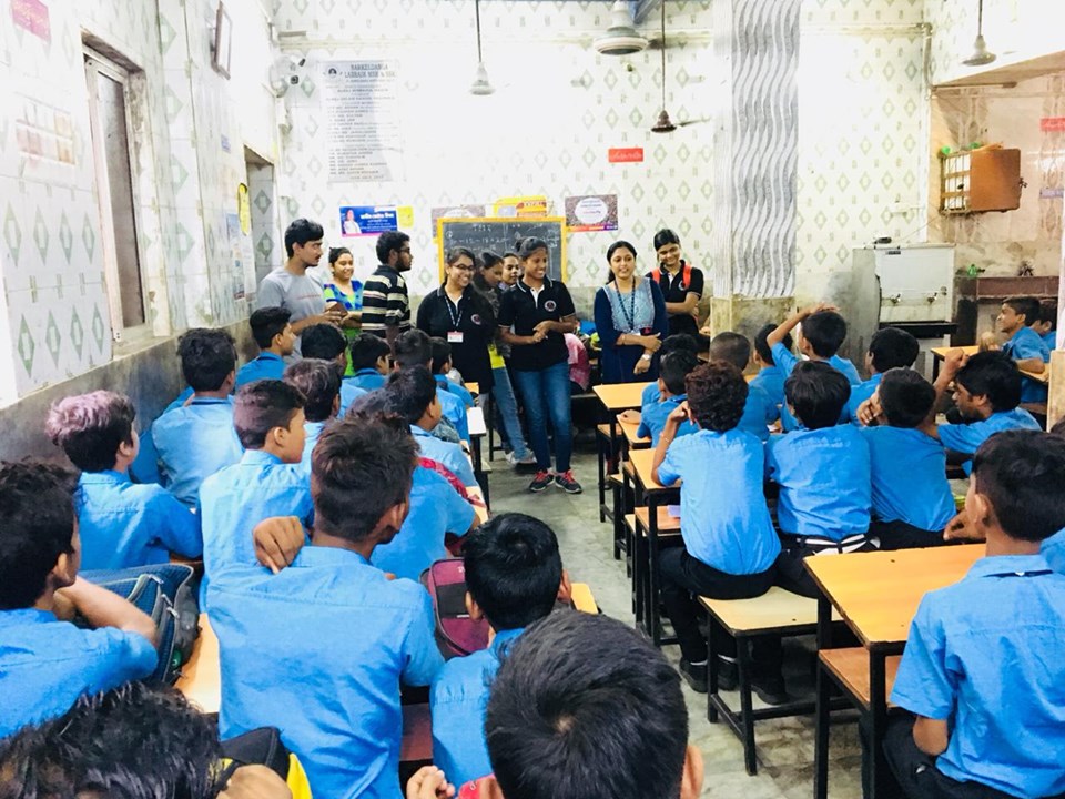 The students of AIMK attended a session organized by NGO “Child Rights and You” on occasion of nutrition week, under the guidance of our esteemed faculty member Prof. Preeta Sinha Ma’am. It was held in government high school, Mominpur where the students of AIMK educated and spread awareness to the children about their hygienic eating habits and the importance of keeping the surroundings clean. Also, they were taught different ways to prevent communicable diseases such as typhoid, plague etc. by means of attractive posters made by the AIMK students.