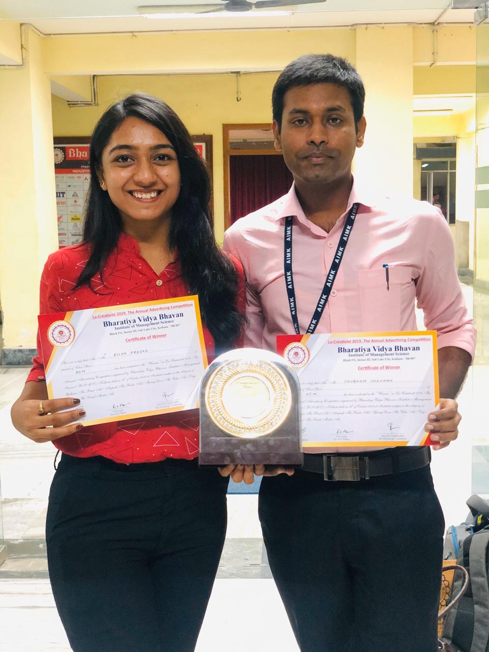 “A good Ad isn’t an Ad that makes you think about it, a good ad is an ad that makes you want to go out and buy it.”On 19th of October, 2019, the Students of AIMK attended an Ad-mad fest – “La Creativitae” organized by Bharatiya Vidya Bhavan Institute of Management Science, Kolkata. More than 10 colleges across Kolkata region participated in the event. The event focused on different aspect of advertising medium which has an informative effect on the consumers. Our student showcased their advertisement skills in various ad competitions and secured winner positions in Airpush (the Radio Ad) and Digi-Bharat (the Social Media Ad). It was a great learning experience for all the participants as they got an opportunity to exchange new ideas.