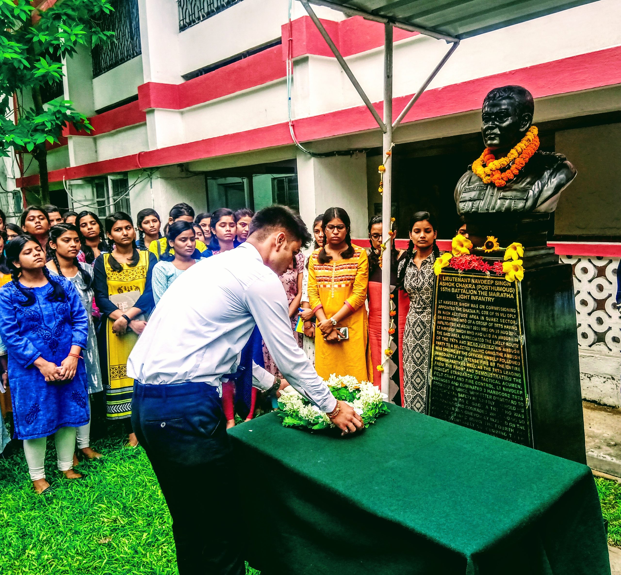 Lieutenant Navdeep Singh Bains , A brave hero who attained martyrdom on 20th august 2011.Like every year, this year also the whole Army Institute of management, kolkata paid tribute to him and remembered him by offering garland of flowers and also had two minutes of silence in his memory. Lieutenant Navdeep Singh Bains displayed his indomitable spirit, determination and exceptional bravery while putting down the terrorist and making the supreme sacrifice for the nation. He was awarded with the Ashoka Chakra posthumously on the 63rd Republic Day by President of India.The observance was come to an end by lighting candles to pay homage to the martyr. Lieutenant Navdeep Singh Bains sir was part of Army Institute of Management,kolkata family and we are proud of his bravery and heroic deed. He will always be alive in our memories.
