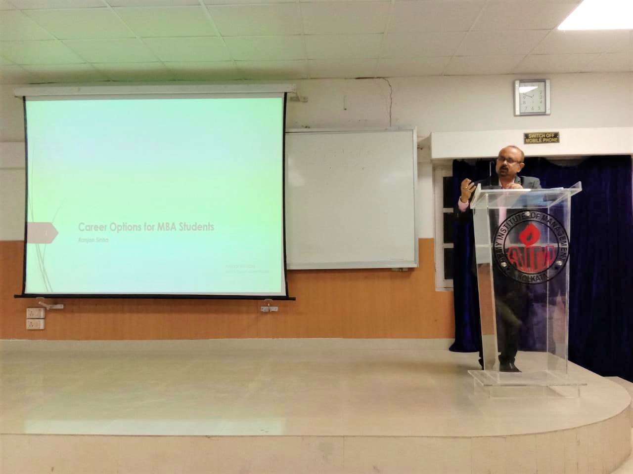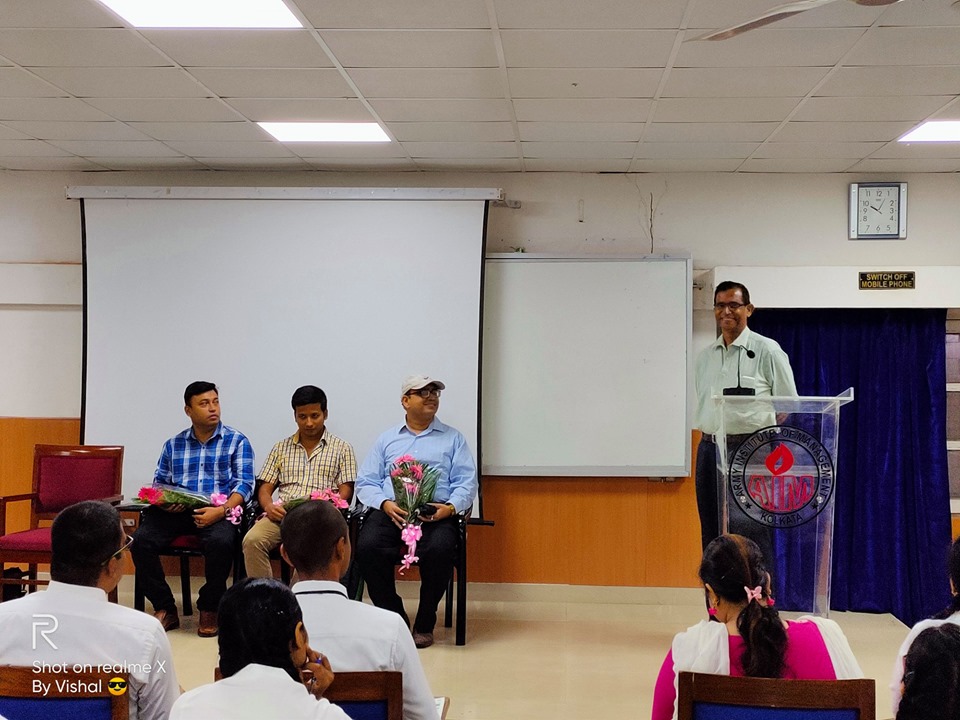 A session organized by Army Institute of Management Kolkata and was delivered by Mr.Ranjan Sinha on 30 August, 2019 which he opened by asserting his belief “it’s 100% definite an MBA degree will move forward your career”. While interacting with the students of MBA 23 batch he discussed in detail the various career options available in different fields of specialization and the job profiles to explore. He went forth in discussing what to expect in a job interview and the various trick questions asked by the recruiters and gave valuable advice on how to tackle them smartly ensuring a positive outcome. The knowledge he divulged today will definitely help everyone be better prepared for the future.