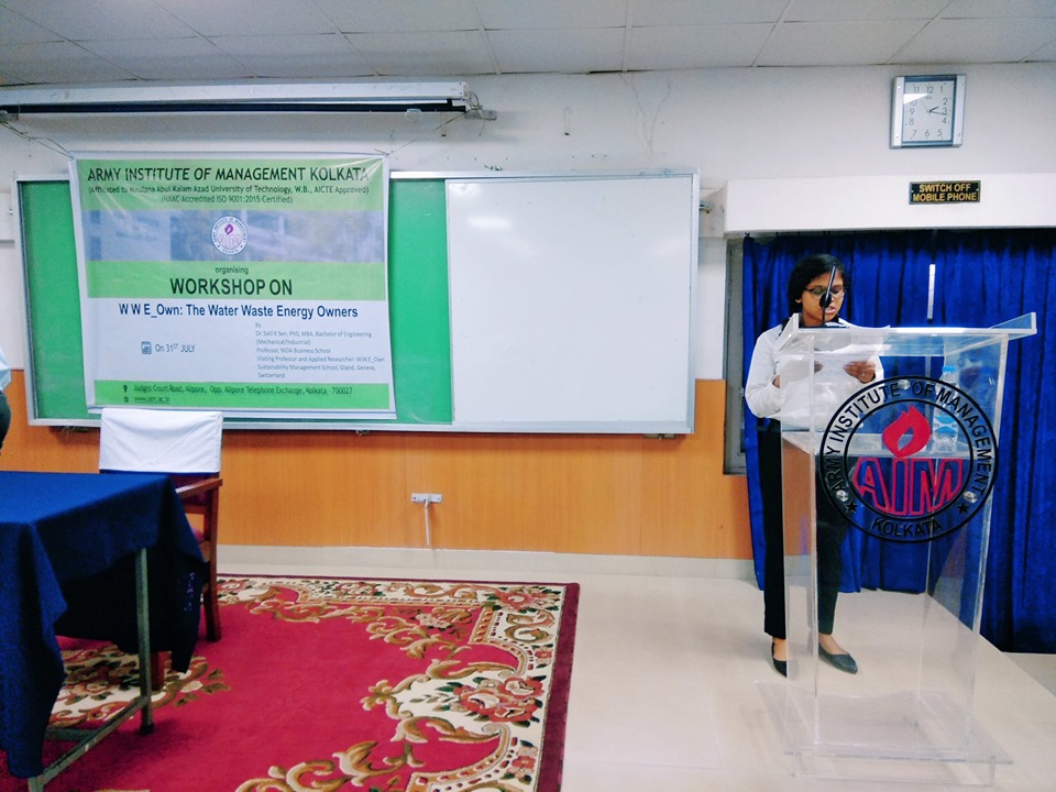 A guest lecture on “WWE Own:The water waste energy owners” was delivered by honorable guest “Dr.Salil K Sen” on 31st July 2019 for MBA 23 batch. He holds a PHD , MBA , B.E in mechanical and is a professor at NIDA business school. He actively conducts workshops on sustainability management school, based out of Geneva, Switzerland. He also runs the living lab which specifically works on sustainability development in an Eco system. Well versed lecture was delivered by him to the students explaining the three facts “what has been, what is it now and what it will be in the future” . Tons of examples were given related to ground water harvesting and concept of urbanization aligned with smart cities and green advertising. The session contained fun activity which involved each student present in hall and the lecture was finally concluded with awarding the winners of the sustainable development management program.