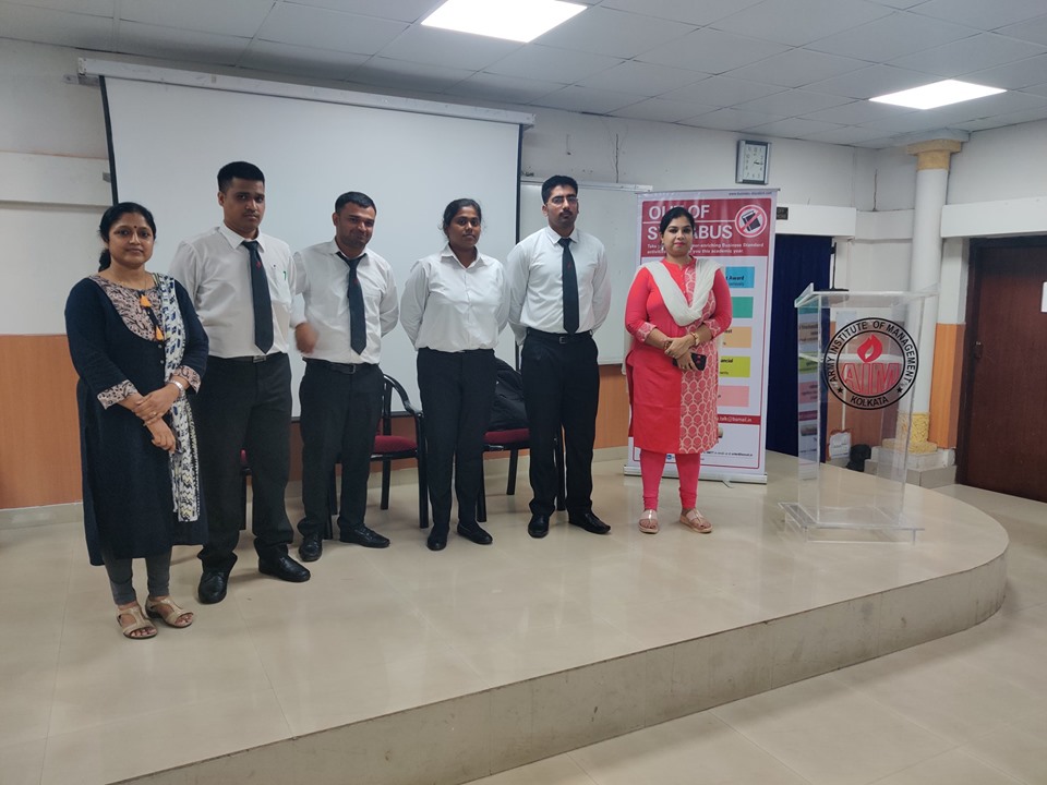A guest lecture was taken by Ms Rituparna Ghosh on 19th July 2019 organised by AIMK in which she told the MBA-23 students on the various challenges faced by HR in this VUCA world. She also told about the role of HR in reshaping the organisation and how humans use emotional touch and robots don’t. She also mentioned about integrity and value which are non-negotiable traits for an employee. She ended the session by quoting “Essential Skill is to Unlearn & Learn.”