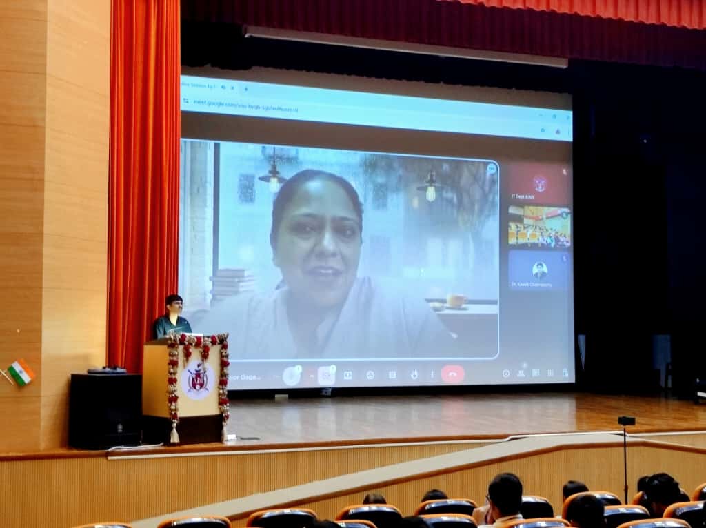 The session, held from 1500 hrs to 1630 hrs, provided valuable perspectives on leadership, discipline, and the practical application of management principles in real-world scenarios. Major Kaur’s engaging talk inspired students to adopt a purpose-driven approach toward their academic and professional journeys.