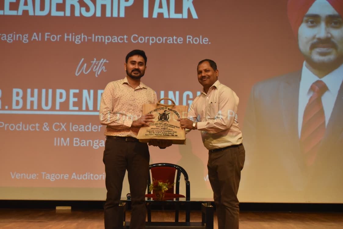 The Army Institute of Management, Kolkata, had the privilege of hosting Major Bhupendra Singh, Vice President – Product & CX at Kotak Securities, for an insightful session on the evolving role of Artificial Intelligence in today’s workforce.